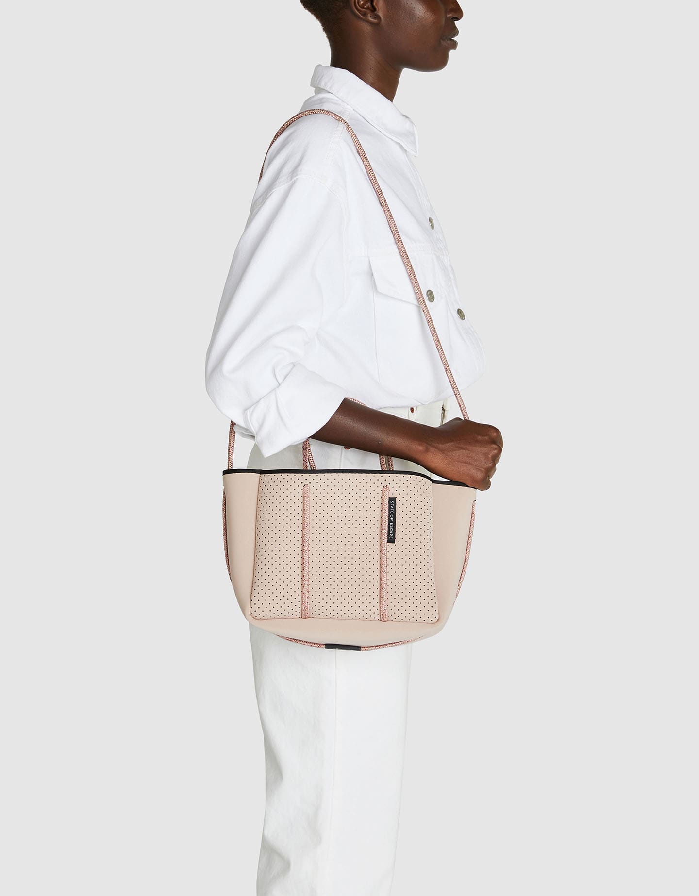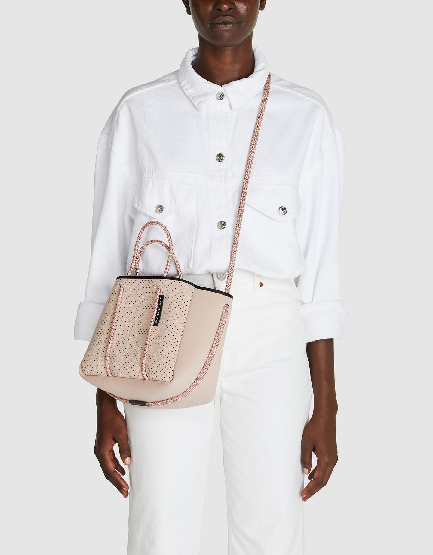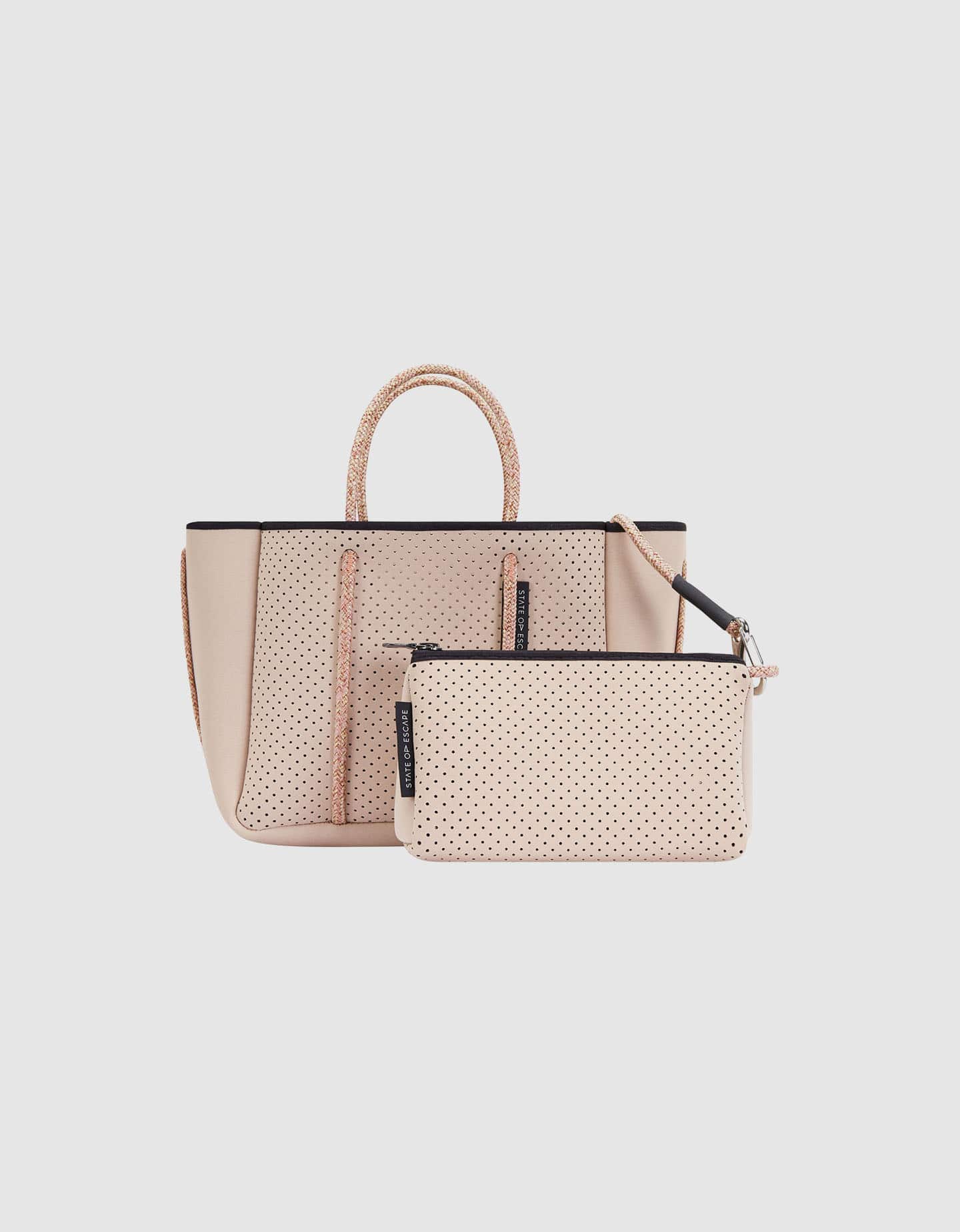 「エスケープ」のデザインをベースに、サイズを一回り小さくしたコンパクトなモデル「プティエスケープ」。ショルダーストラップが付いた2WAY仕様で、小物の収納に便利な同素材のポーチも付いており、ポーチはバッグの底に繋がっているカラビナに装着可能。美しい佇まいはそのままに、より普段使いしやすいサイズ感が魅力のバッグです。