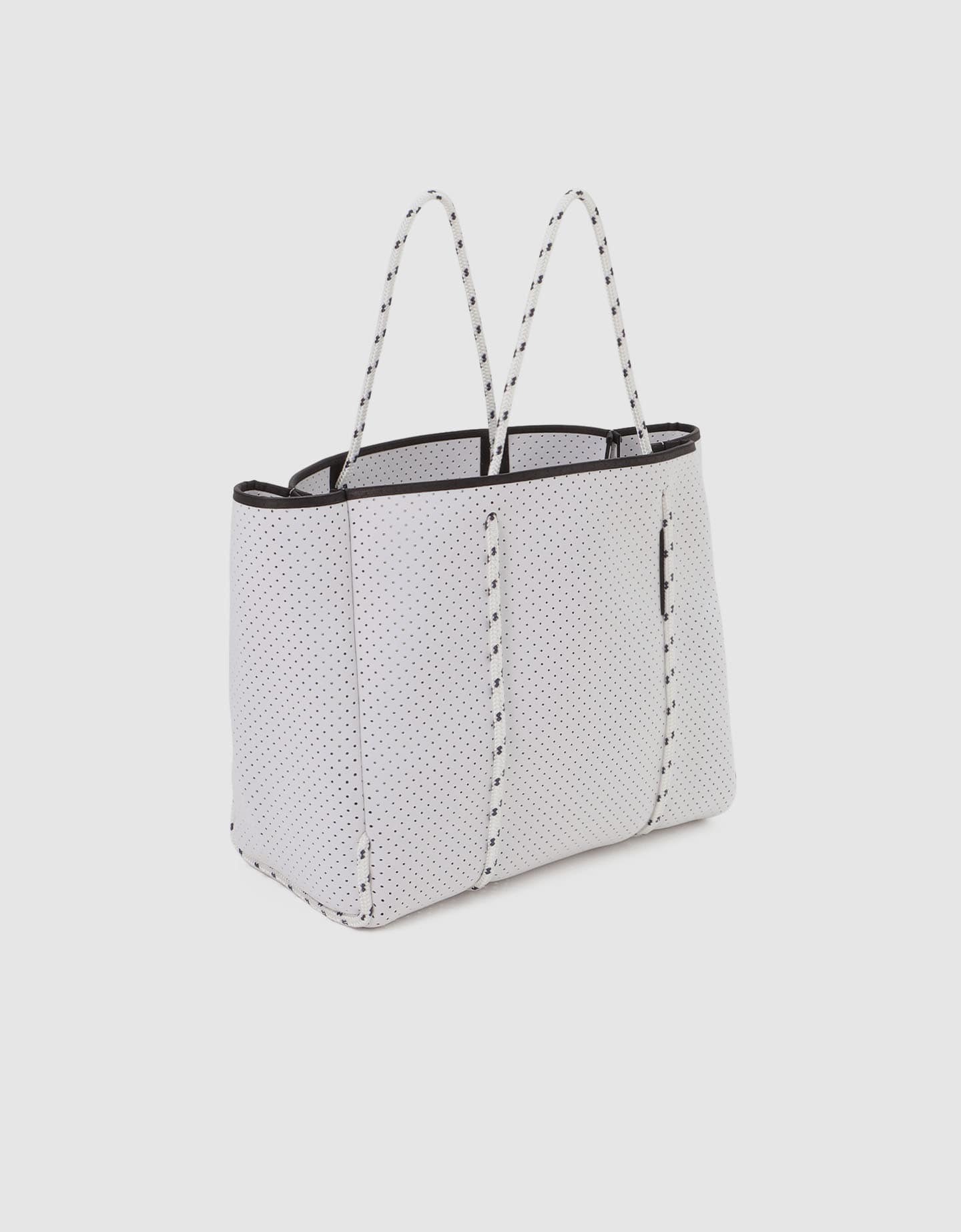 バッグ底部のカラビナに装着できる同素材のポーチが付いており、小物の収納に最適。肩にかけるだけでなく、ハンドバッグとしてもエレガントに、オンオフ問わず幅広いシーンで活躍するバッグです。