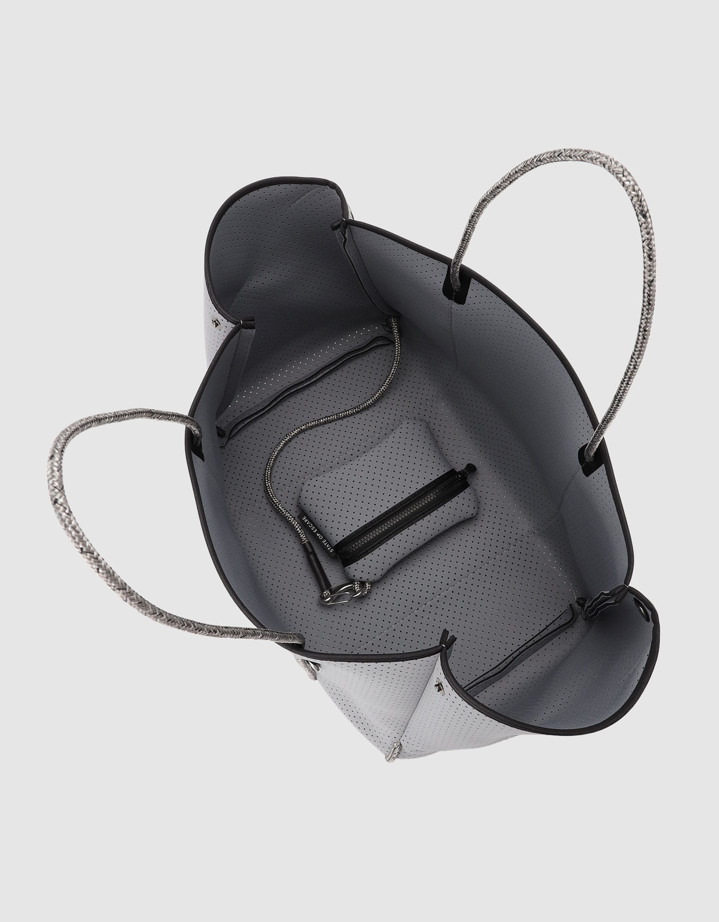 パンチングされたネオプレン生地に、ボディを引き立てる美しいセーリング用のロープを使用することで、シンプルながらもディティールにこだわったルックスを実現。