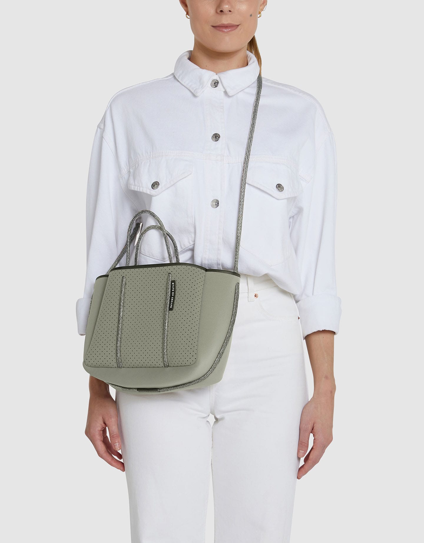 「エスケープ」のデザインをベースに、サイズを一回り小さくしたコンパクトなモデル「プティエスケープ」。ショルダーストラップが付いた2WAY仕様で、小物の収納に便利な同素材のポーチも付いており、ポーチはバッグの底に繋がっているカラビナに装着可能。美しい佇まいはそのままに、より普段使いしやすいサイズ感が魅力のバッグです。