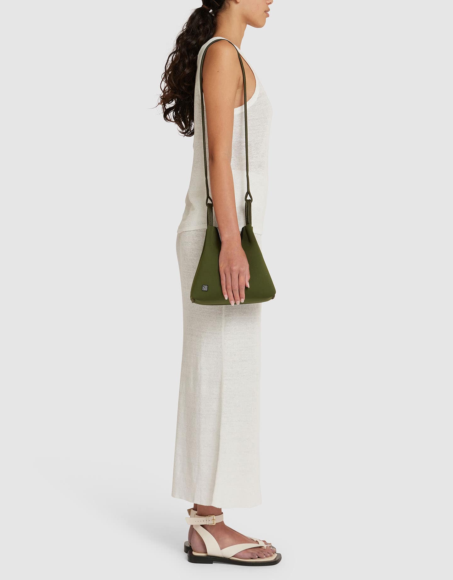 クロスボディスタイルで身軽に、必要最低限なものだけを持ち歩くミニマルスタイルで心も体も開放され、周囲の景色を存分に楽しめます。また、長いロープをサイドに垂らし、トップハンドルで手持ちすることで、洗練された魅力的な印象を演出できます。