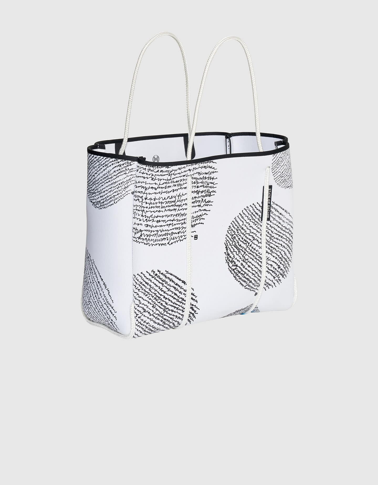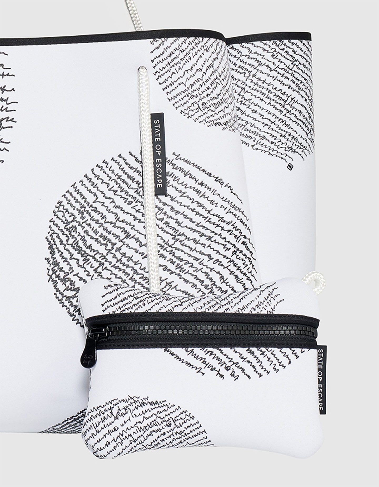 トレンドに左右されないエレガントな佇まいの、ブランドのシグネチャーモデル「エスケープ」から全てが始まりました。ネオプレン生地に、ボディを引き立てる美しいセーリング用のロープを使用することで、シンプルながらも完成度のあるルックスを実現。同素材のポーチが付いたこの美しくてたっぷり入るバッグは、旅行に行く時にも毎日のお出かけにもぴったりです。とことんシンプルなのに注目されてしまう、心も身体も軽くなるバッグです。