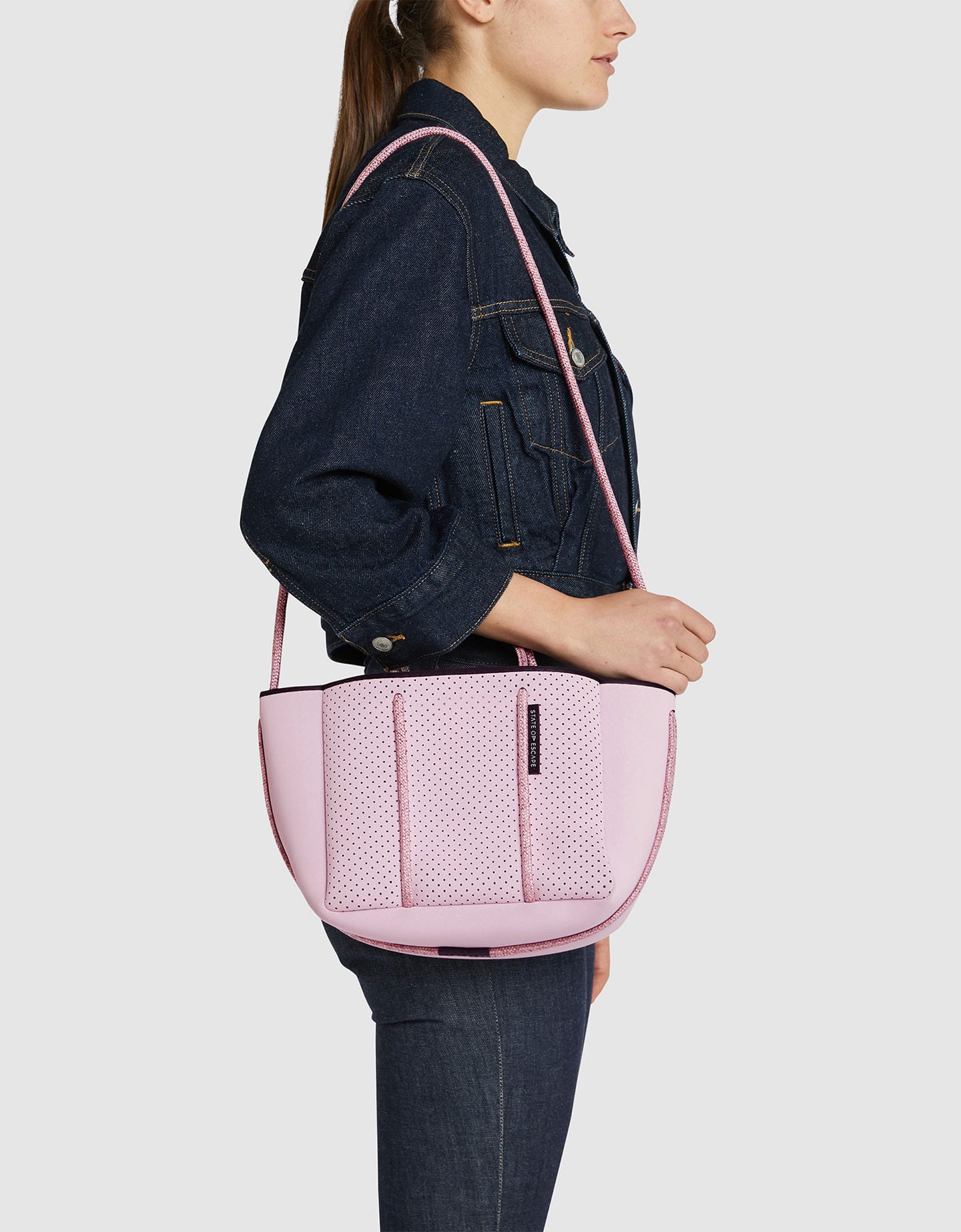 「エスケープ」のデザインをベースに、サイズを一回り小さくしたコンパクトなモデル「プティエスケープ」。ショルダーストラップが付いた2WAY仕様で、小物の収納に便利な同素材のポーチも付いており、ポーチはバッグの底に繋がっているカラビナに装着可能。美しい佇まいはそのままに、より普段使いしやすいサイズ感が魅力のバッグです。