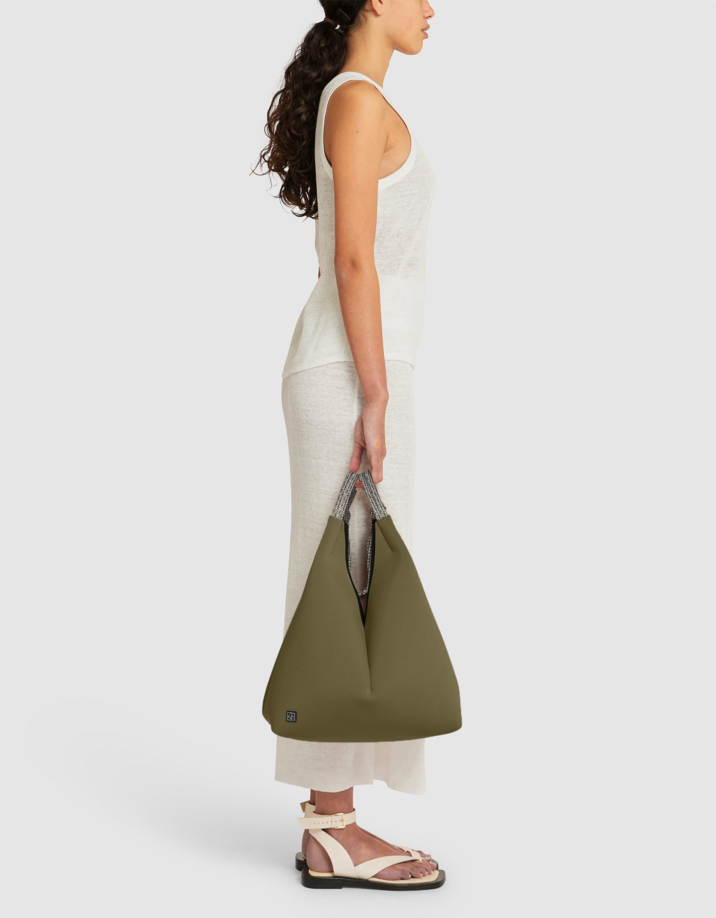 肩にかけても手に持っても使えるソルスティス・トートは、スタイルと多用途性を兼ね備え、週末のリラックスムードを引き立てます。その洗練されたシルエットと絶妙なサイズ感により、太陽の下や海辺でのひとときをはじめ、昼から夜まであらゆるシーンで活躍する理想的なパートナーです。