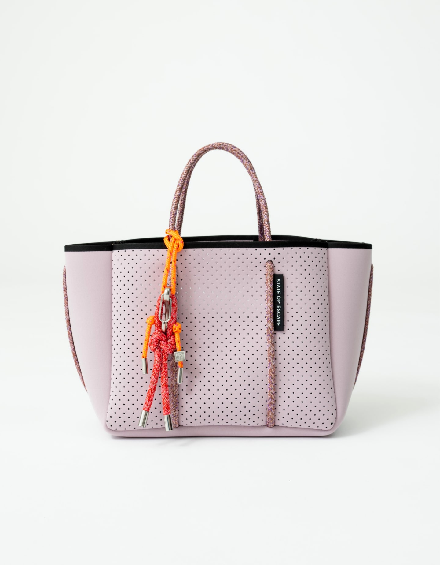 ミニミー バッグチャームは、バッグの持ち手にフックやループで取り付けることができ、重ね付けも楽しめるSTATE OF ESCAPEの新たな相棒。環境に配慮されたアップサイクルのセーリングロープから丁寧に製作され、STATE OF ESCAPEと共に歩んできた女性達にちなんで名付けられています。「ミニミーバッグチャーム ゾーイ」は、中心部には「ラバーズノット」と呼ばれる、ほどけにくい結び技法が施されています。