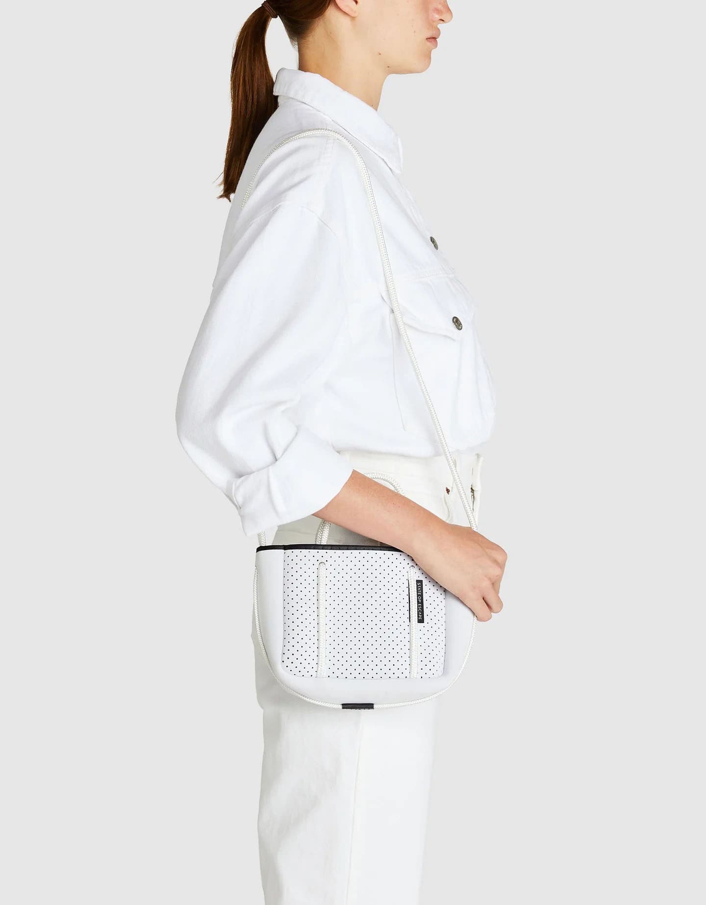 ・ソフトなセーリングロープのショルダーストラップは、斜め掛けでも使用可能。