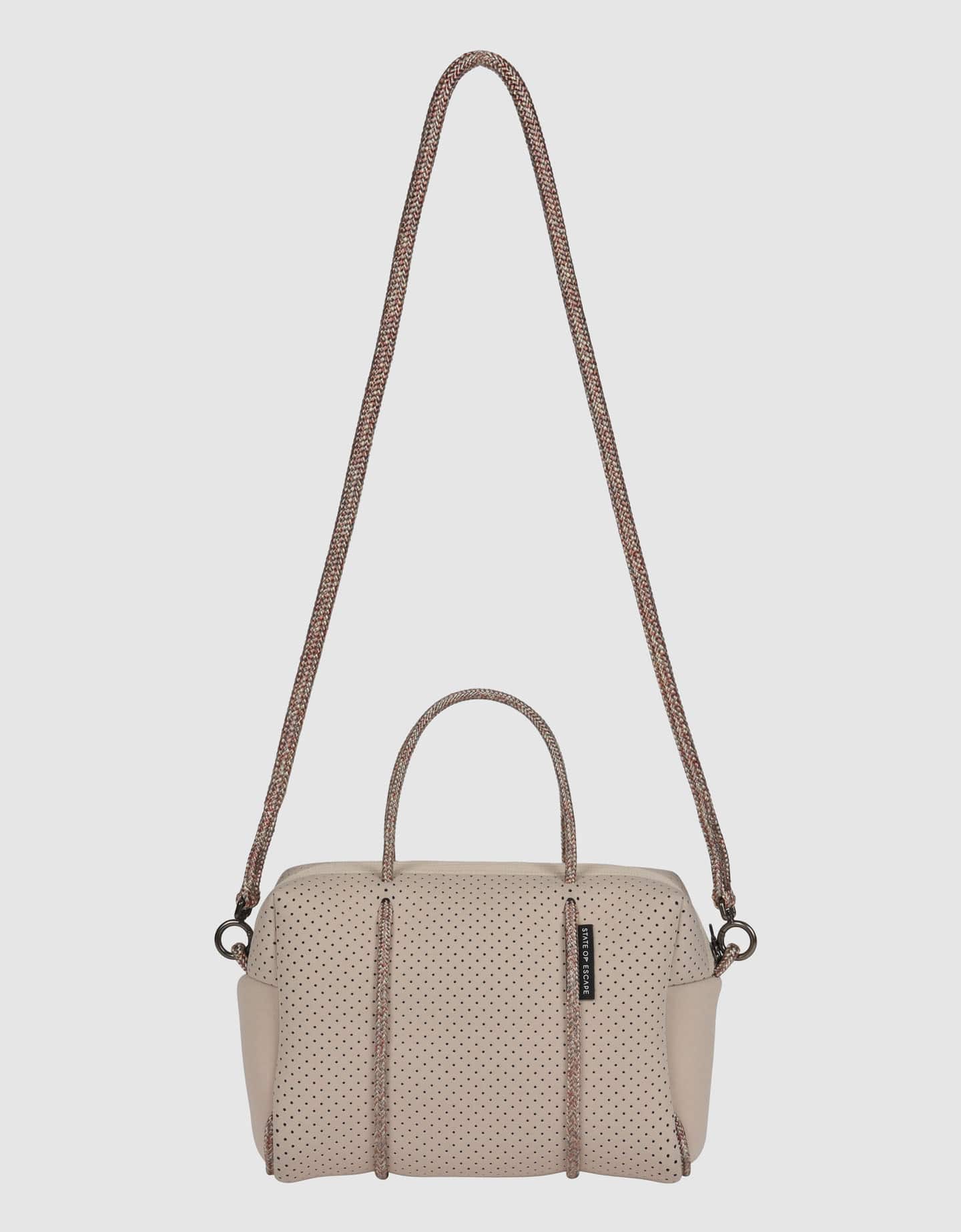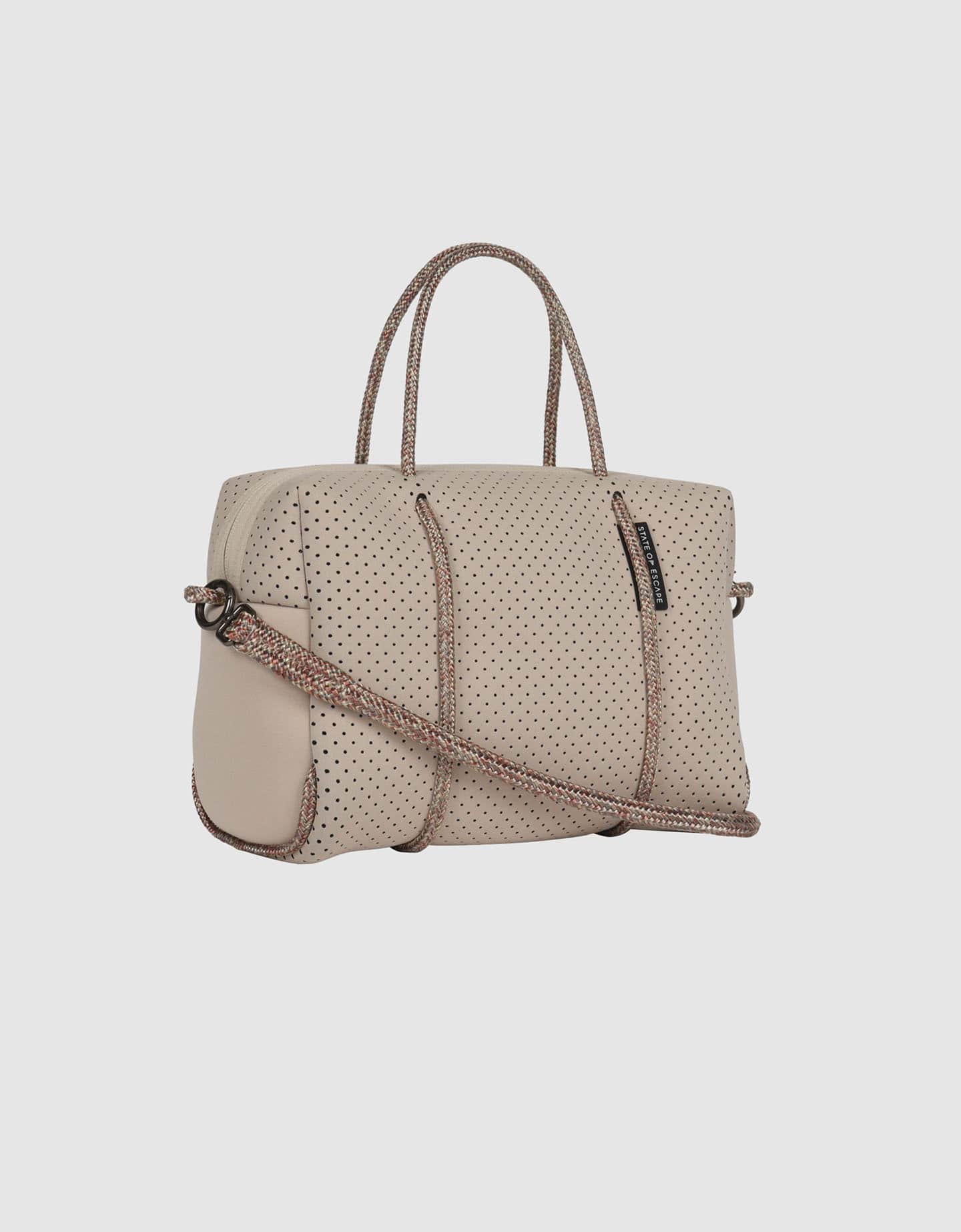ファスナーと取り外し可能なショルダーストラップを備え、シーンに合わせた持ち方が可能。都会のライフスタイルに寄り添うデザインで、日常から週末まで活躍します。
