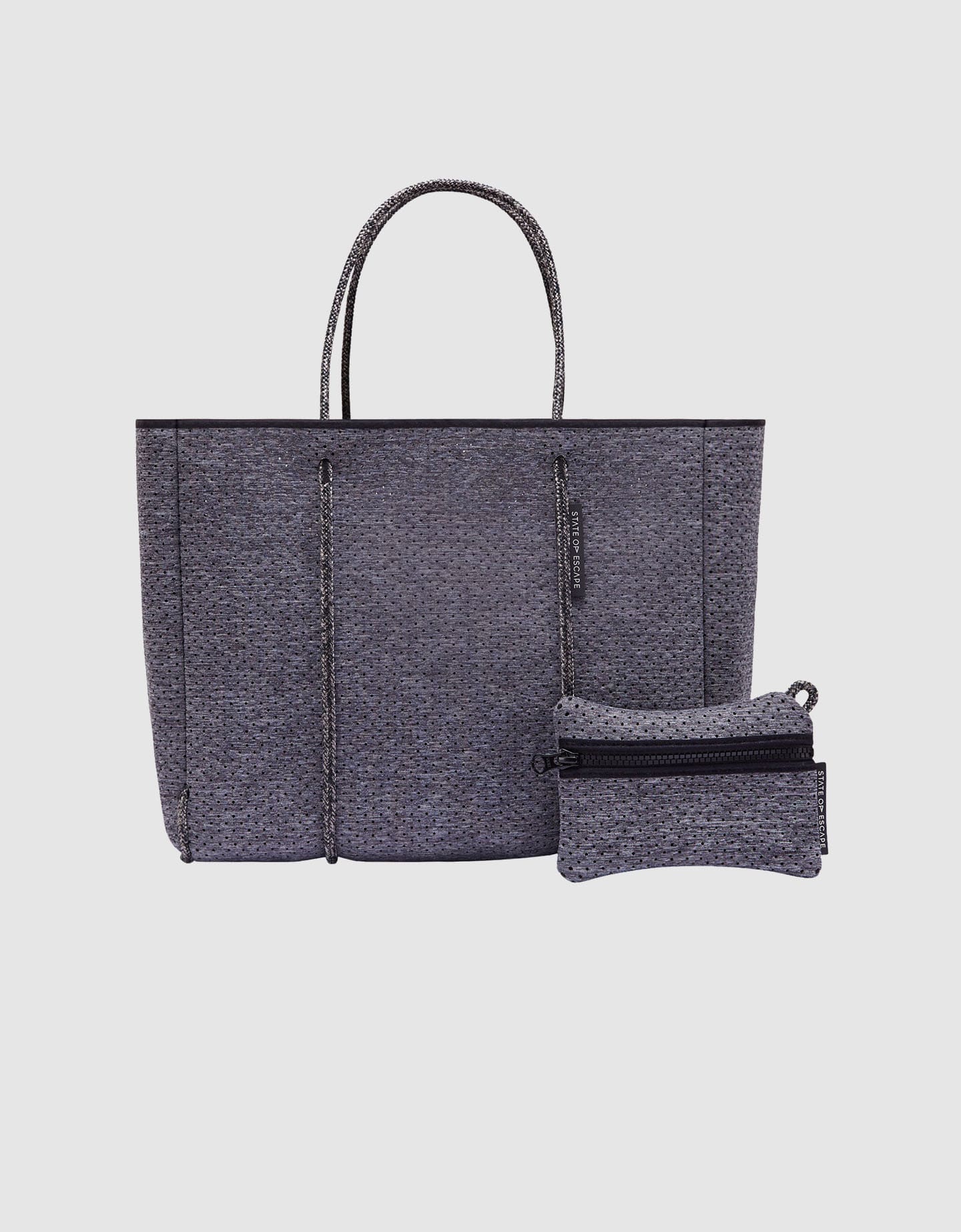 バッグ底部のカラビナに装着できる同素材のポーチが付いており、小物の収納に最適。肩にかけるだけでなく、ハンドバッグとしてもエレガントに、オンオフ問わず幅広いシーンで活躍するバッグです。