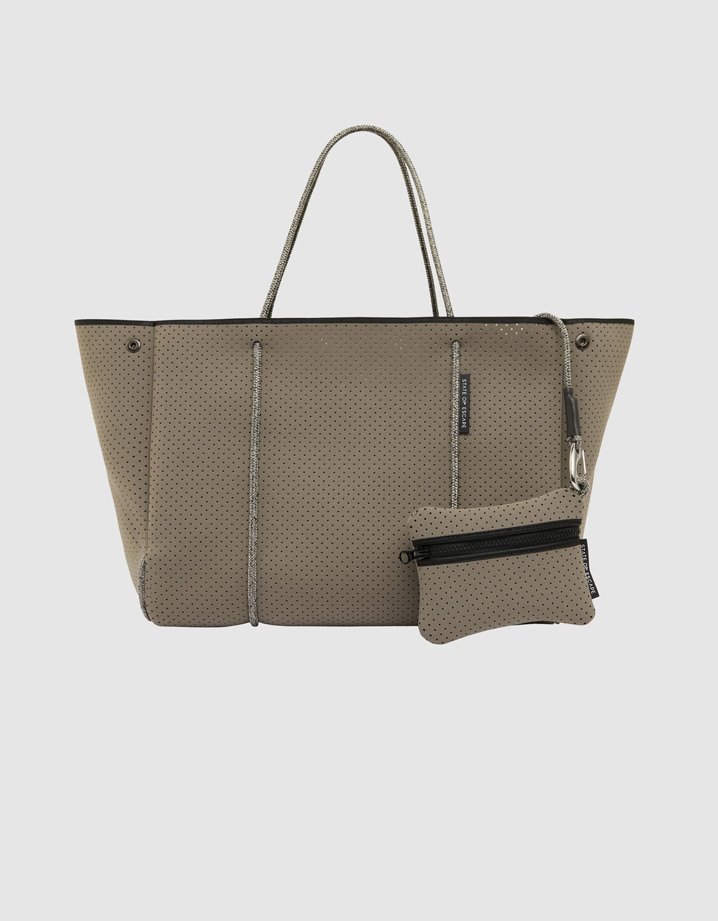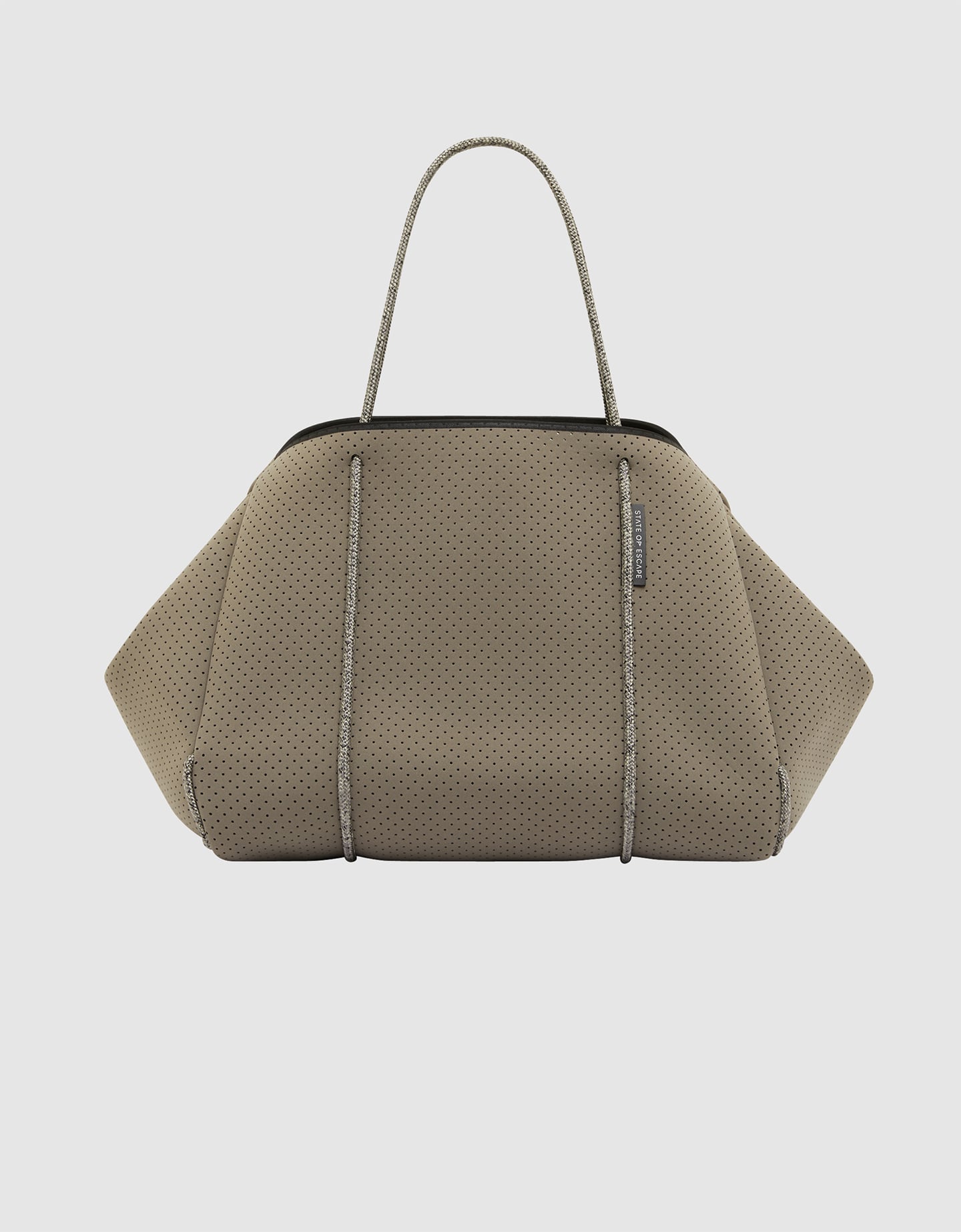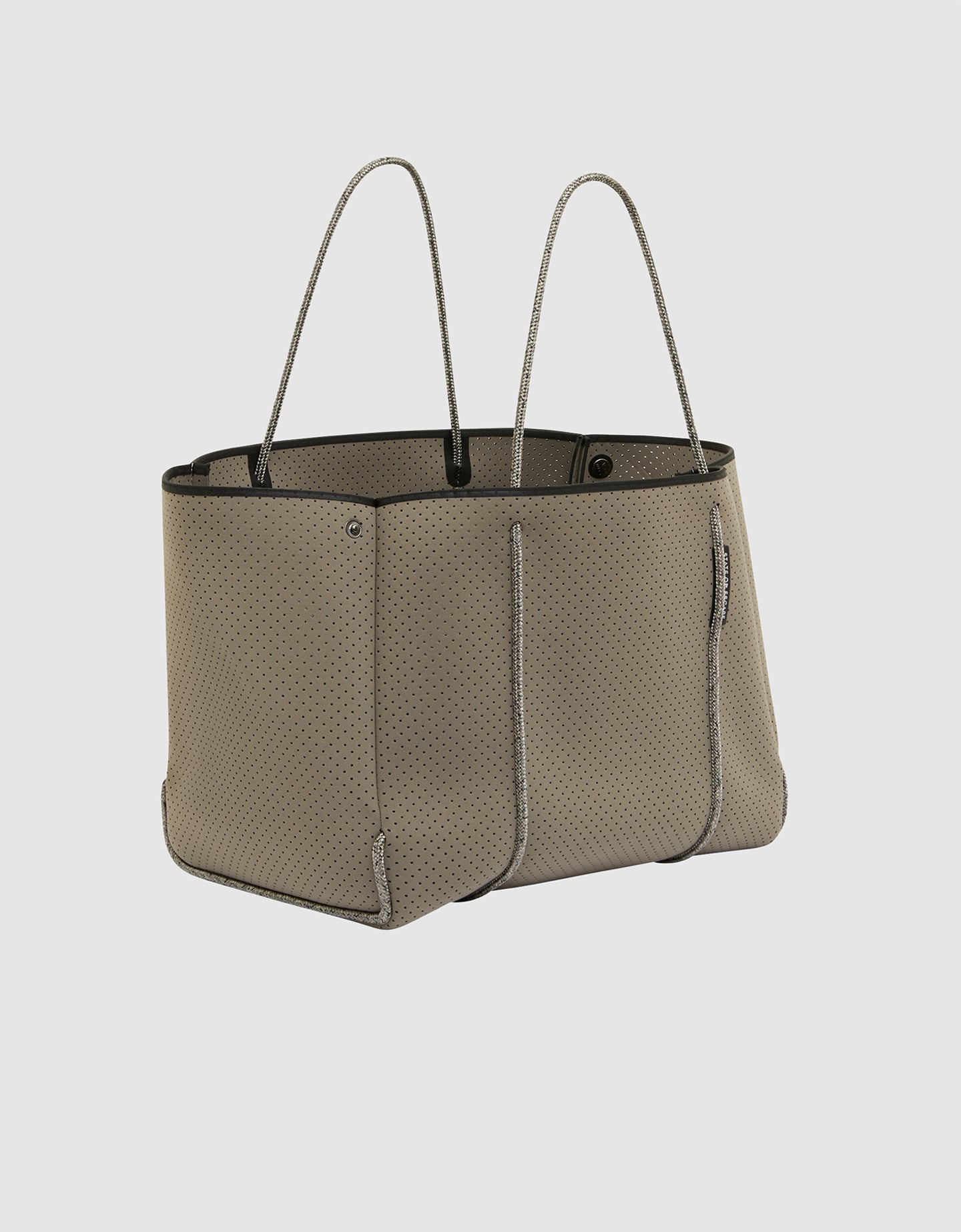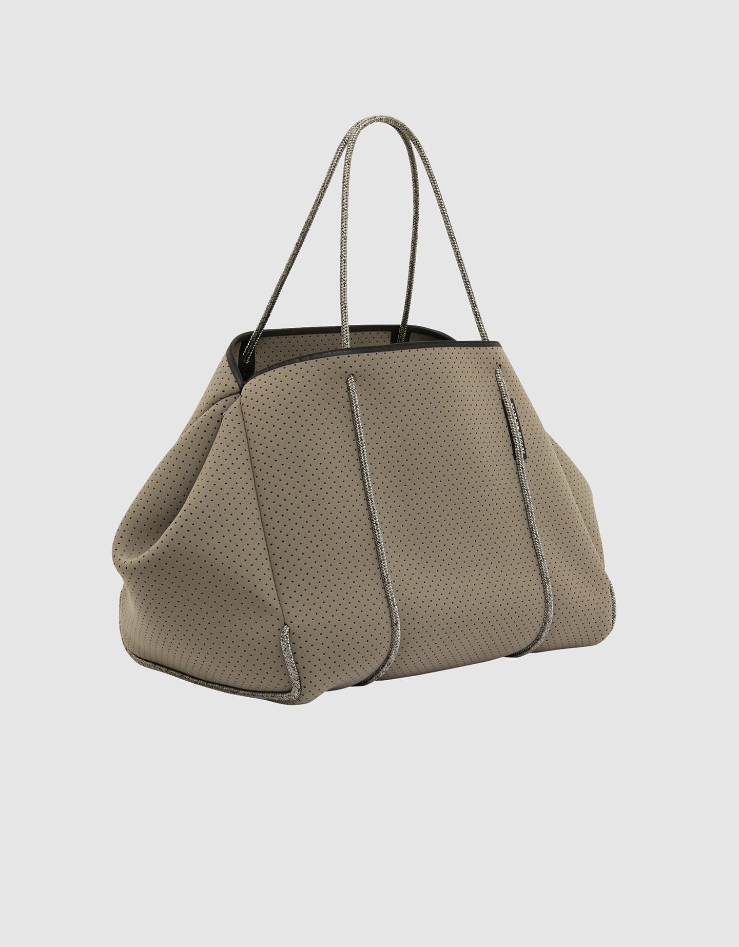 パンチングされたネオプレン生地に、ボディを引き立てる美しいセーリング用のロープを使用することで、シンプルながらもディティールにこだわったルックスを実現。