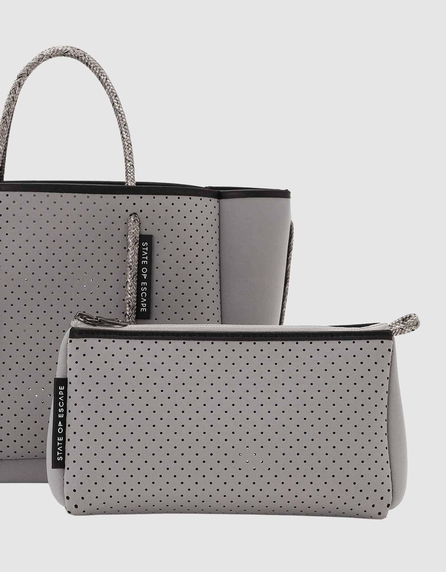 「エスケープ」のデザインをベースに、サイズを一回り小さくしたコンパクトなモデル「プティエスケープ」。ショルダーストラップが付いた2WAY仕様で、小物の収納に便利な同素材のポーチも付いており、ポーチはバッグの底に繋がっているカラビナに装着可能。美しい佇まいはそのままに、より普段使いしやすいサイズ感が魅力のバッグです。