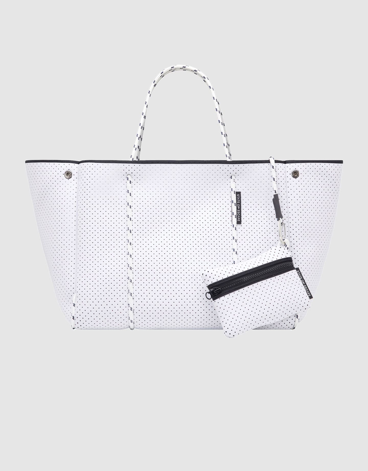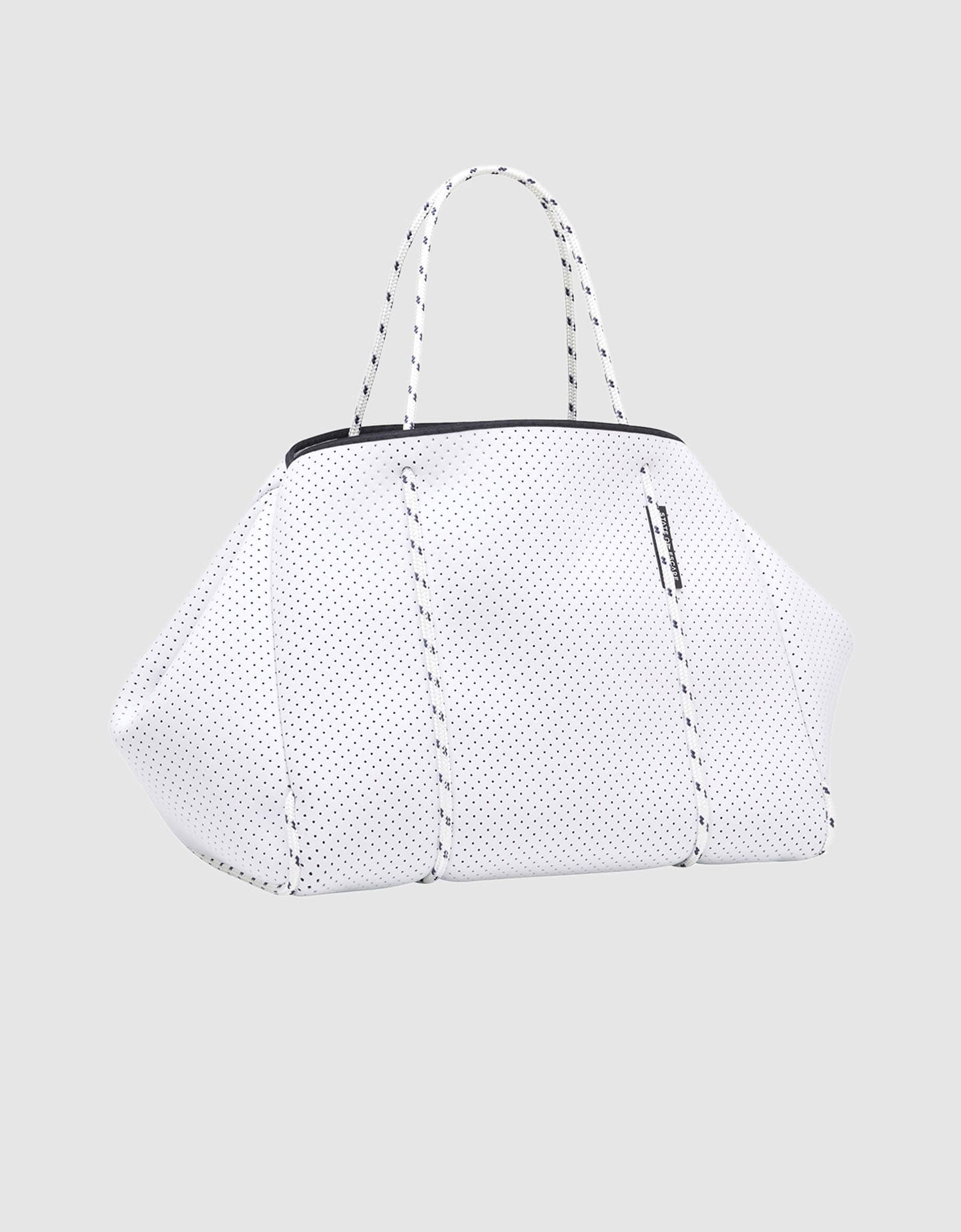 パンチングされたネオプレン生地に、ボディを引き立てる美しいセーリング用のロープを使用することで、シンプルながらもディティールにこだわったルックスを実現。