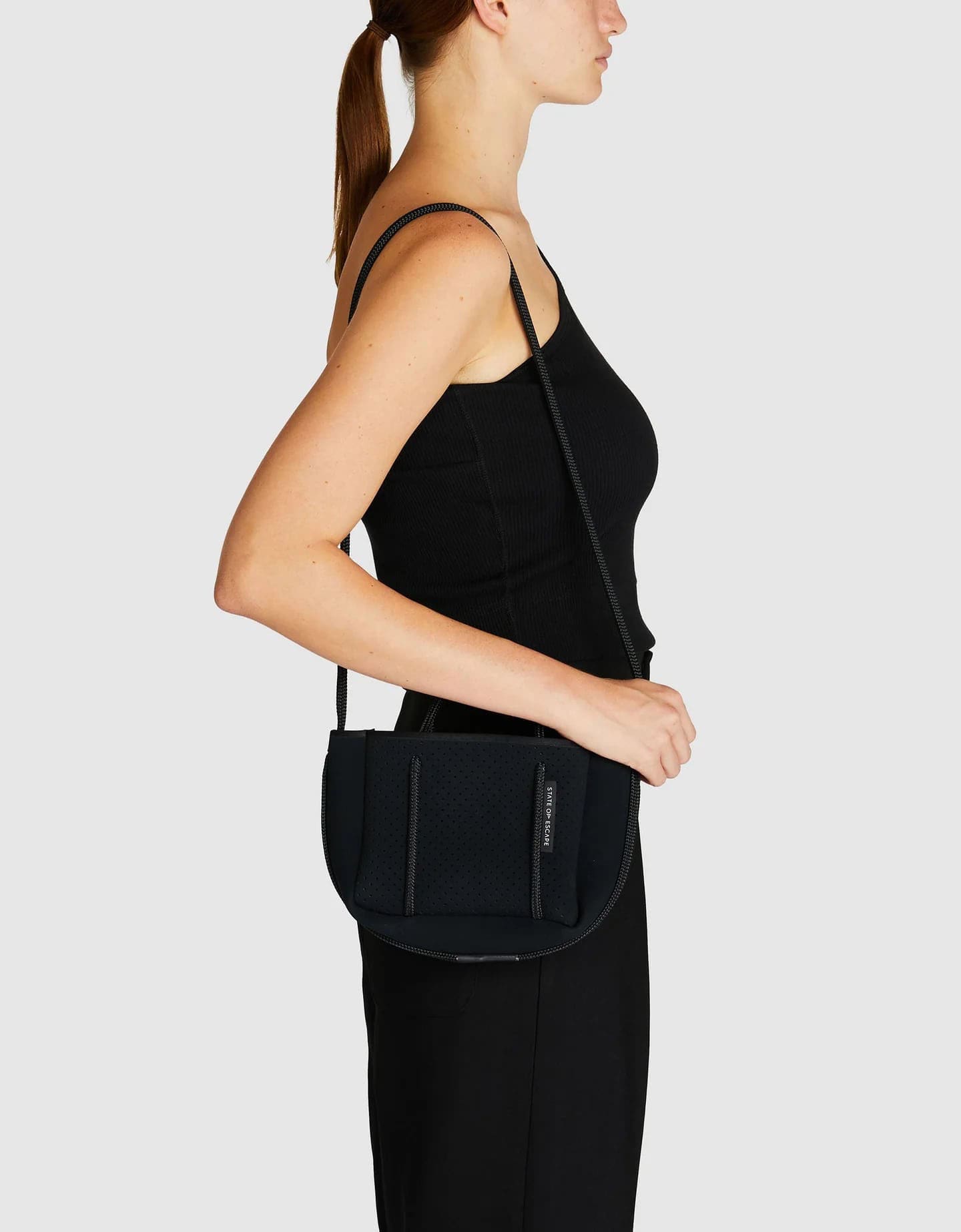 ・ソフトなセーリングロープのショルダーストラップは、斜め掛けでも使用可能。