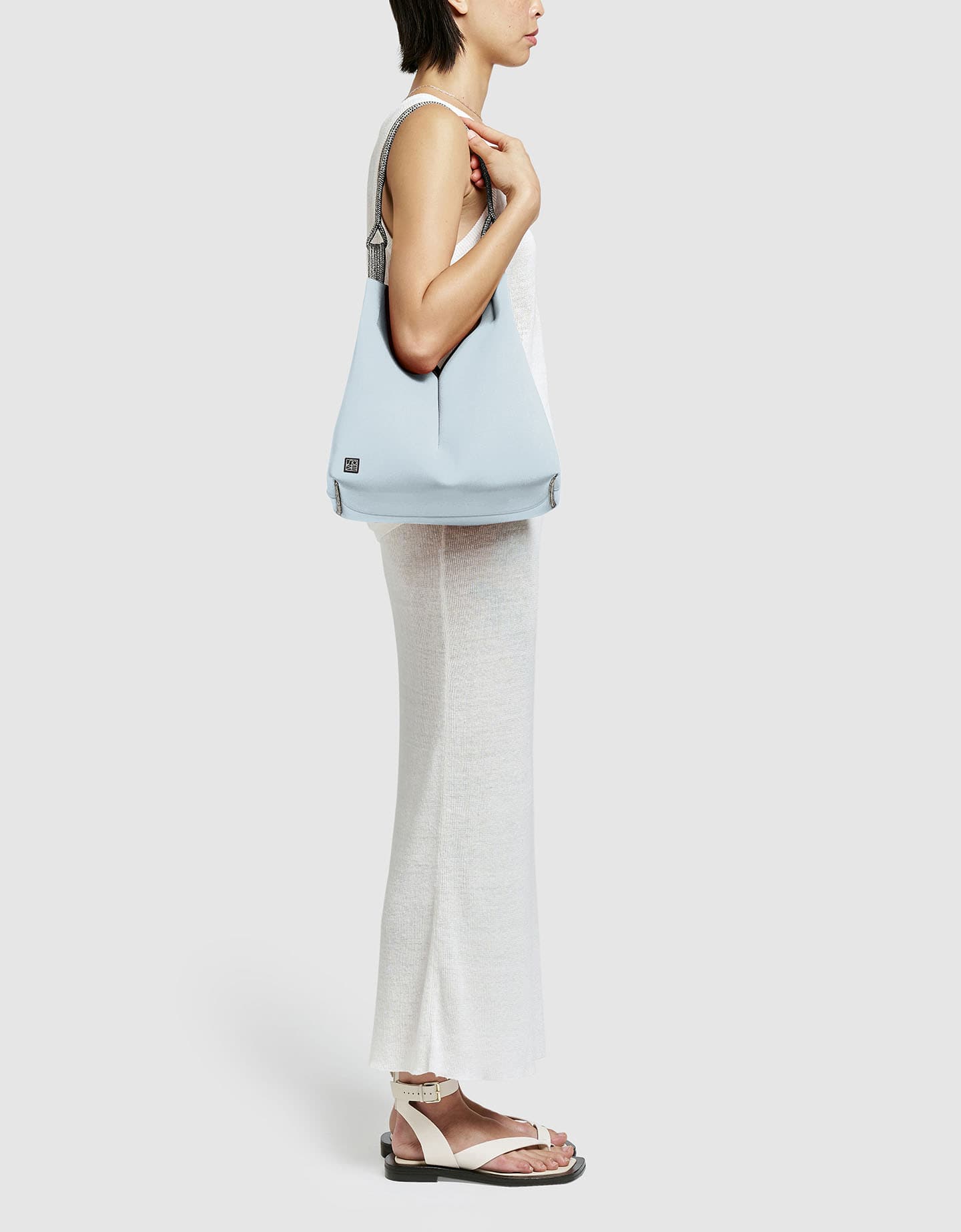 手に持つことも肩から掛けることも可能なソルスティスミニ トートは、従来のソルスティス トートよりもコンパクトなサイズ感でスタイルと多用途性を兼ね備え、週末のリラックスムードを引き立てます。太陽の下や海辺でのひとときをはじめ、昼から夜まであらゆるシーンで活躍する理想的なパートナーです。