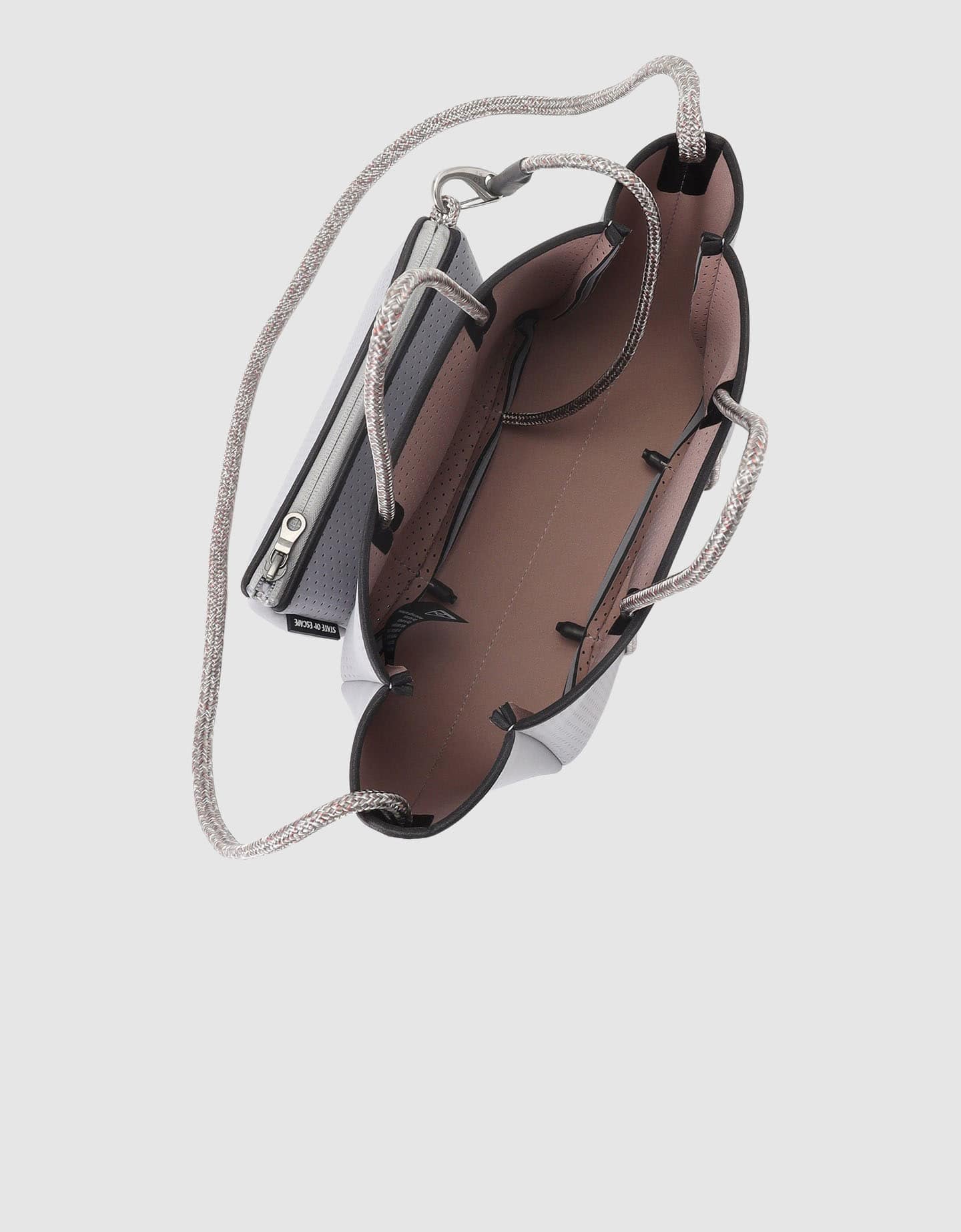 「エスケープ」のデザインをベースに、サイズを一回り小さくしたコンパクトなモデル「プティエスケープ」。取り外し可能なショルダーストラップが付いた2WAY仕様で、小物の収納にも便利な同素材のポーチも付いています。美しい佇まいはそのままに、より普段使いしやすいサイズ感が魅力のバッグです。