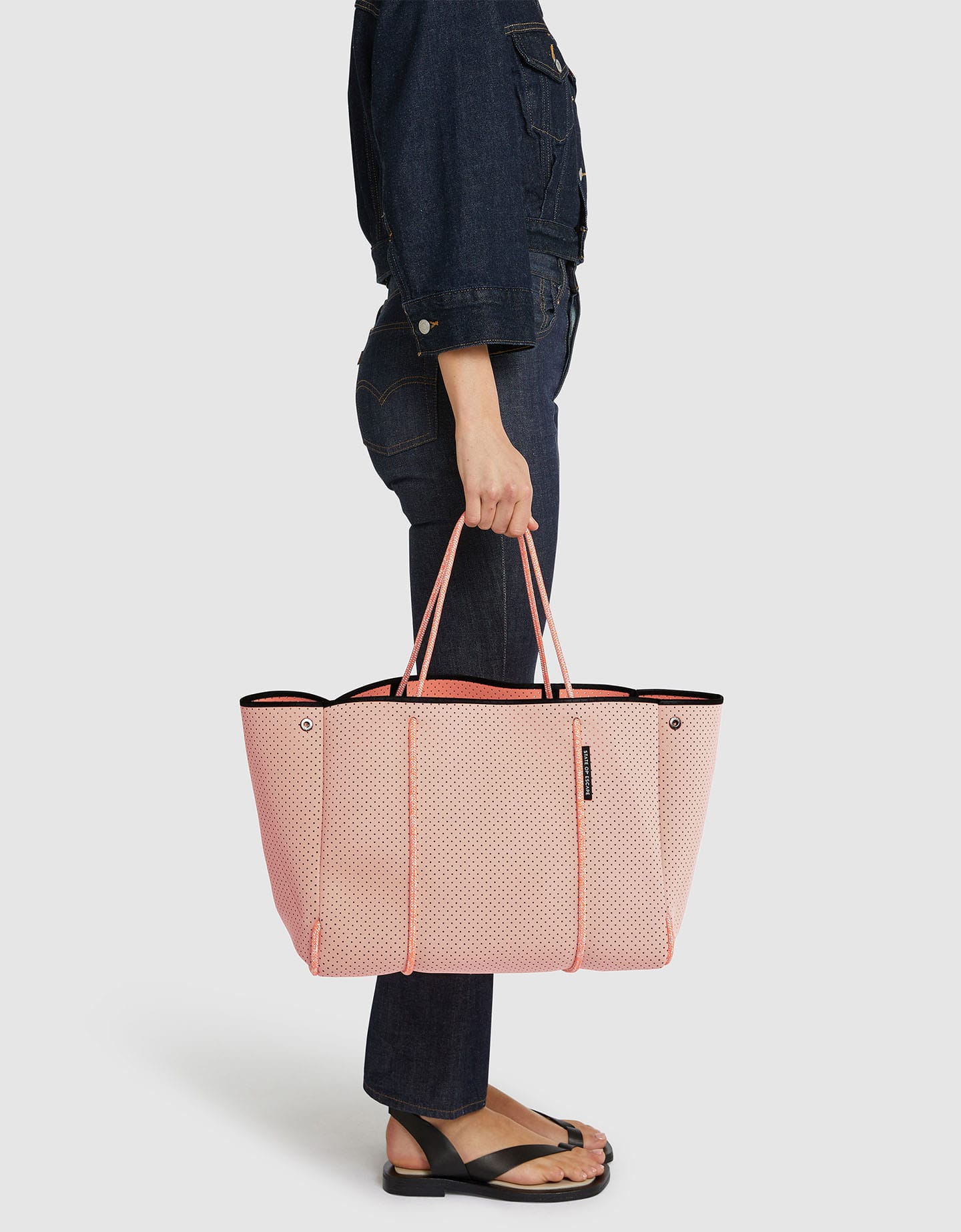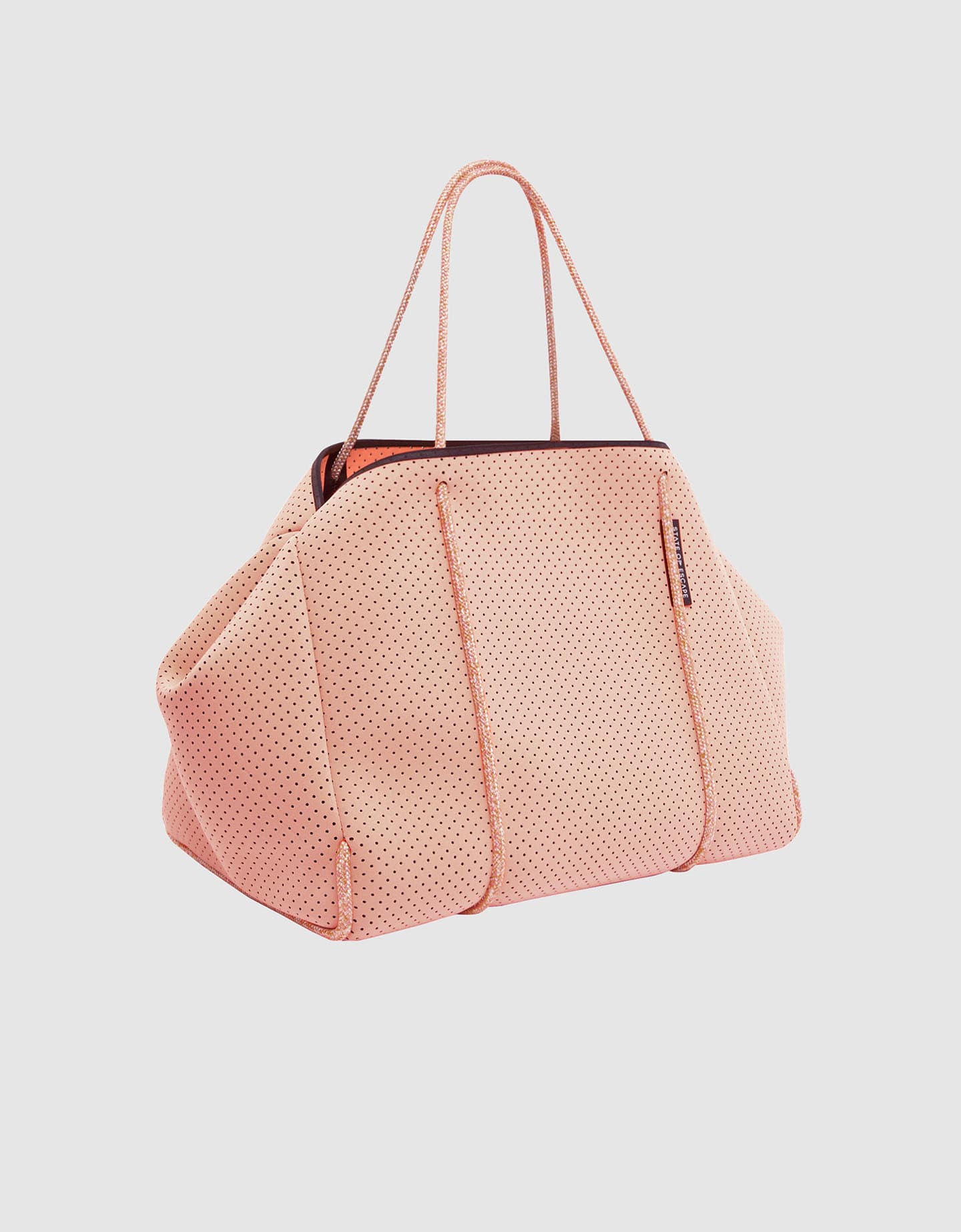 トレンドに左右されないエレガントな佇まいの、ブランドのシグネチャーモデル「エスケープ」から全てが始まりました。パンチングされたネオプレン生地に、ボディを引き立てる美しいセーリング用のロープを使用することで、シンプルながらも完成度のあるルックスを実現。同素材のポーチが付いたこの美しくてたっぷり入るバッグは、旅行に行く時にも毎日のお出かけにもぴったりです。とことんシンプルなのに注目されてしまう、心も身体も軽くなるバッグです。