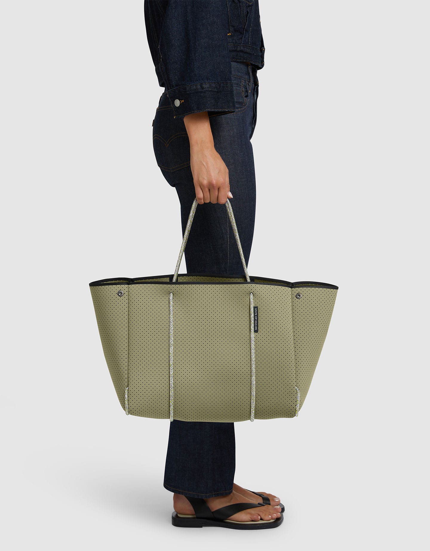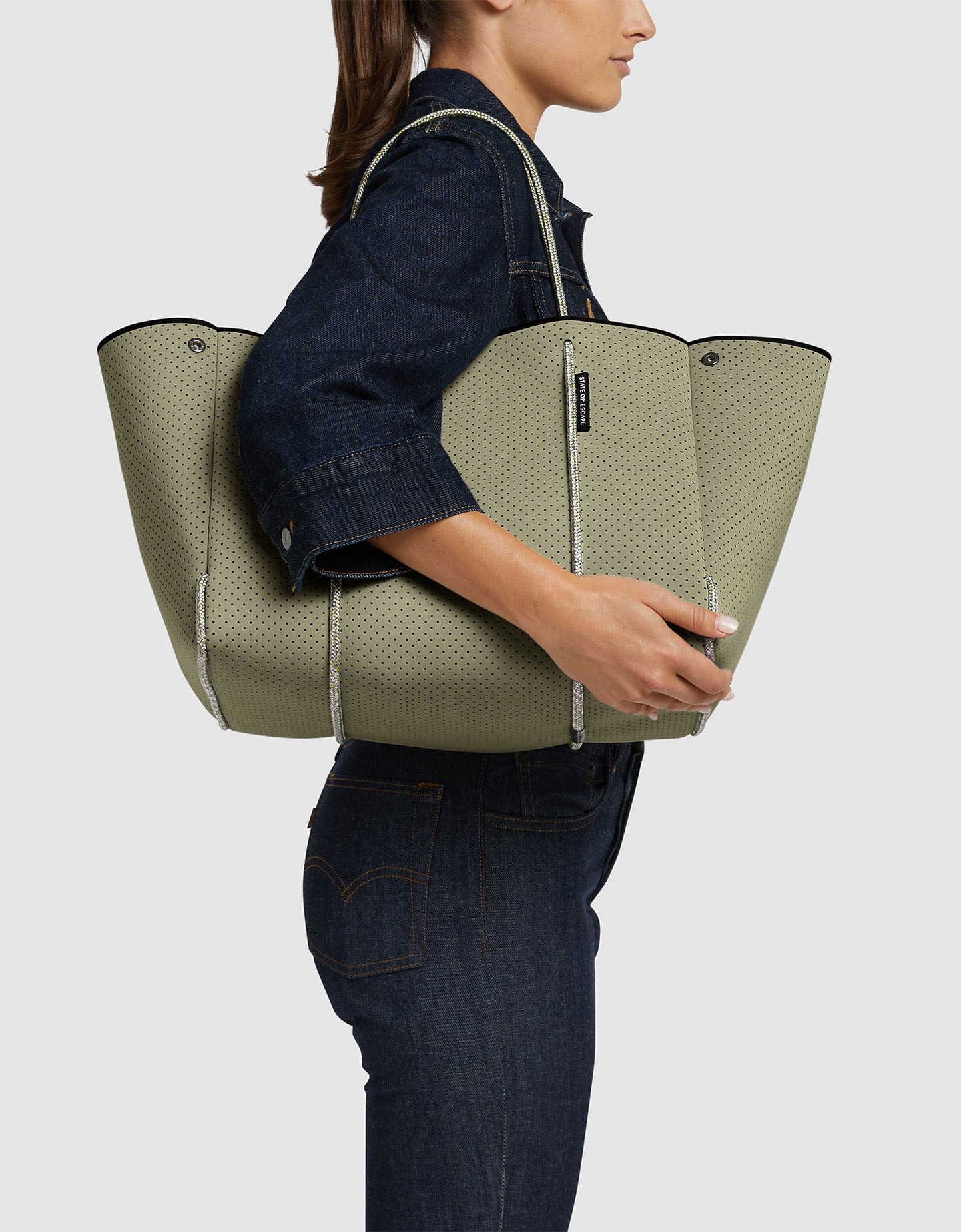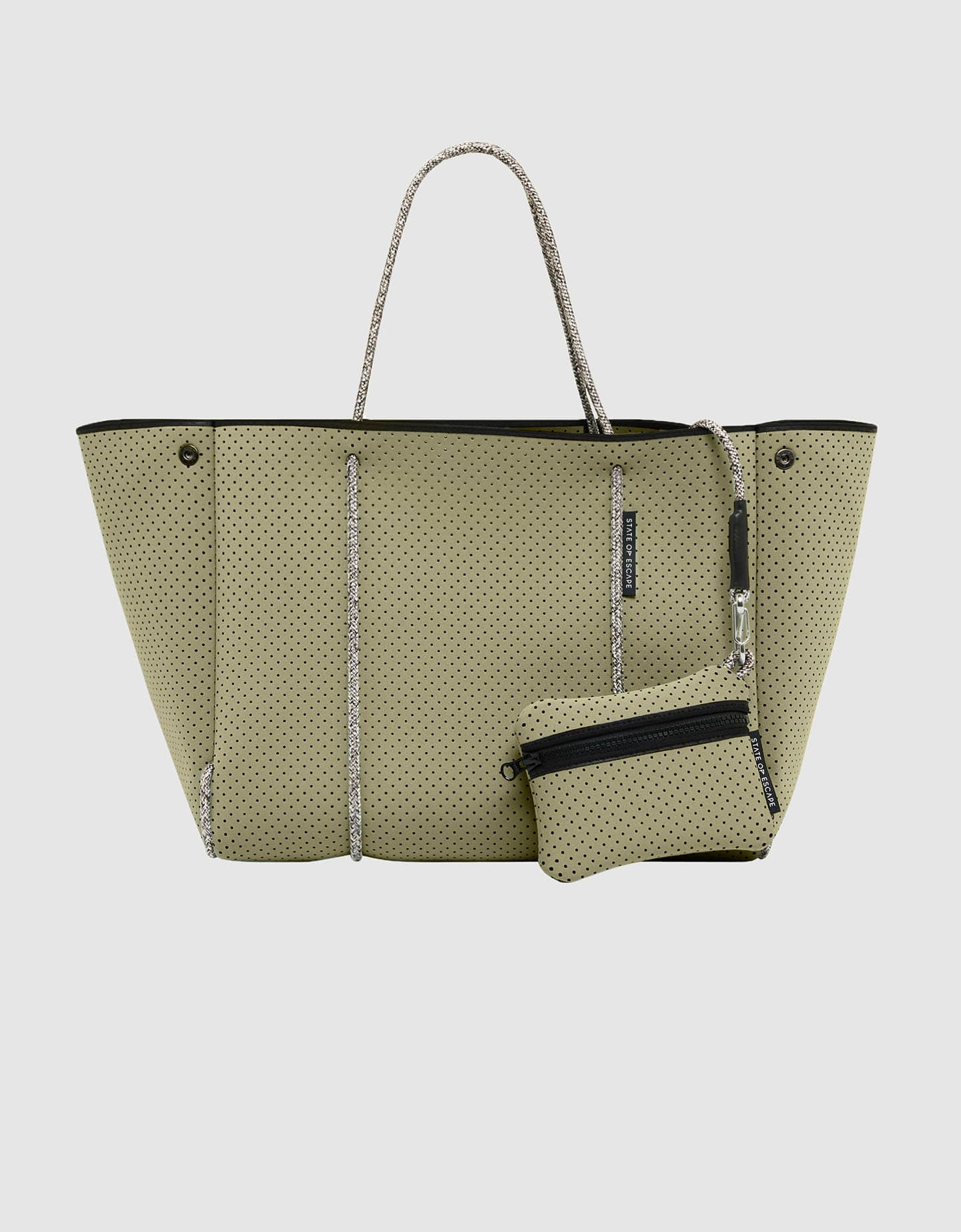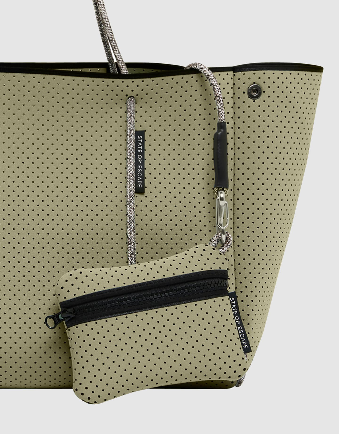 トレンドに左右されないエレガントな佇まいの、ブランドのシグネチャーモデル「エスケープ」から全てが始まりました。パンチングされたネオプレン生地に、ボディを引き立てる美しいセーリング用のロープを使用することで、シンプルながらも完成度のあるルックスを実現。同素材のポーチが付いたこの美しくてたっぷり入るバッグは、旅行に行く時にも毎日のお出かけにもぴったりです。とことんシンプルなのに注目されてしまう、心も身体も軽くなるバッグです。